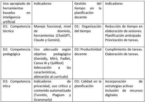 La utilización de herramientas basadas en inteligencia artificial, como ChatGPT, Claude y Gemini, demostró una influencia positiva significativa en la optimización de la planificación docente, reduciendo de manera considerable los tiempos de organización, producción y control de calidad en comparación con los métodos tradicionales.