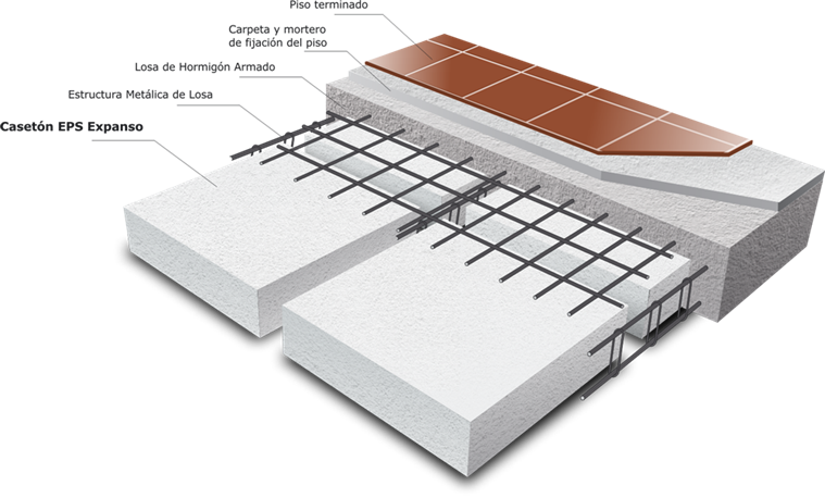 La losa nervada tendrá una configuración 60x15x60 cm tal como se muestra en la Figura 4 con casetones de Poliestireno Expandido Auto extinguible (EPS) de 60x60x35 cm (12).