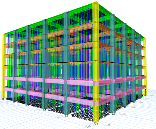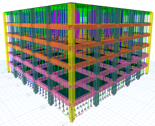En esta investigación se analizó un edificio de concreto armado, con una geometría simétrica en planta y elevación tomada de la investigación de Guilcaso et al. (10). Para la modelación de la estructura se utilizó el software de análisis de elementos finitos llamado ETABS (11), debido a que brinda las herramientas necesarias para el análisis por proceso constructivo. La edificación tiene la característica de ser considerada una edificación esencial que se encuentra ubicado en la ciudad de Quito, Ecuador. En la Tabla 1 se muestra las características del Modelo analizado y en la Figura 3 su distribución en planta.