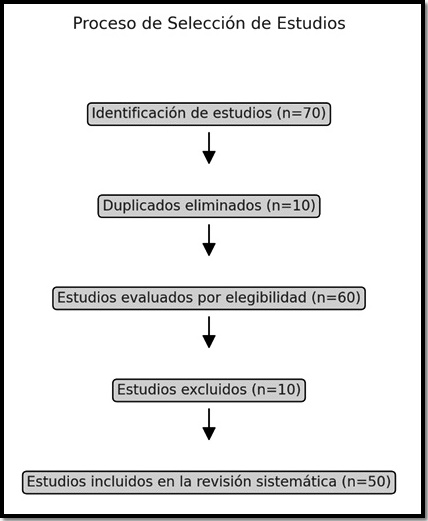 De 70 artículos encontrados inicialmente, se seleccionaron 50 que cumplían plenamente con los criterios de inclusión, considerados los más relevantes para la evaluación y la discusión de los resultados obtenidos.