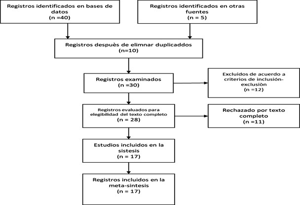 La presente investigación, se ejecuta a partir del paradigma cuantitativo, de tipo descriptiva y se complementa con un diseño documental-bibliográfico8. Lo que permite la recolección de la información extraída de los artículos arbitrados, entre otros, abordando el método analítico, orientando y complementando el estudio de aspectos particulares, explorados en el análisis de contenido escrito, a través del método analítico-sintético9. Además, se desarrolla a través de una revisión sistemática de la literatura, siguiendo las directrices del método PRISMA (Preferred Reporting Items for Systematic Reviews and Meta-Analyses). La selección de los artículos se llevó a cabo en varias etapas, siguiendo el flujo de trabajo del método PRISMA. Dichas fuentes incluyeron bases de datos como SCIELO, SCOPUS y PUBMED. Los juicios de inclusión se concentraron en artículos de acceso abierto, en español e inglés, que abordan temas relacionados con el objeto de estudio y sus respectivas variables de análisis.