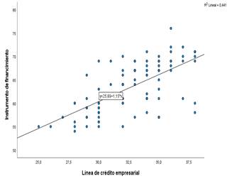 Figura 3 Diagrama de dispersión de la línea de crédito empresarial y el instrumento de financiamiento