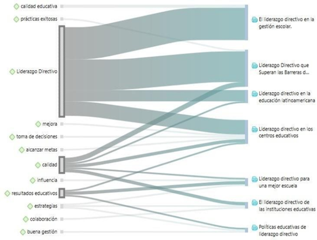 En la Figura 2, se aprecia códigos o términos de palabras vinculados entre sí, el diagrama muestra que el liderazgo directivo está en relación a la calidad del servicio y también asociados prácticas exitosas, en ese sentido el liderazgo que asumen los directivos en función a la gestión conlleva una serie de procesos administrativos en bien de mejorar de la calidad de los aprendizajes. El liderazgo tiene que tener en claro que existen barreras que limitan el acceso, al ejercicio participativo y al propio aprendizaje, pudiendo ser estas físicas, de tipo organizacional, culturales y políticas, o las que surgen entre las interacciones entre los miembros que conforman la comunidad educativa, por ende, estas barreras pueden hallarse tanto en el interior de la escuela como en el exterior.