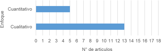Por otro lado, se identificó el enfoque de estudio de los 20 artículos seleccionados. De estos, 13 artículos emplean un enfoque cualitativo, 5 artículos utilizan un enfoque cuantitativo, y 2 artículos poseen un enfoque mixto, como se ilustra en la Figura 4. Esta distribución de enfoques refleja la diversidad metodológica en la investigación sobre el juego como estrategia pedagógica, permitiendo una comprensión más integral del tema.