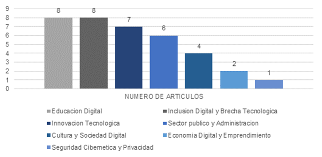 En primer lugar, se identificaron y definieron claramente las categorías en las que se agruparon los artículos, incluyendo aquellas que suelen ser recurrentes en los estudios sobre transformación digital. Este enfoque permitió organizar la información de forma sistemática, facilitando la comprensión de las tendencias, retos y avances en los distintos ámbitos donde la digitalización está impactando a los países hispanohablantes.