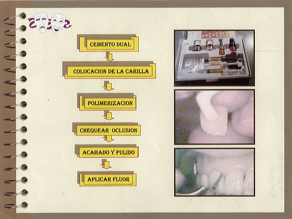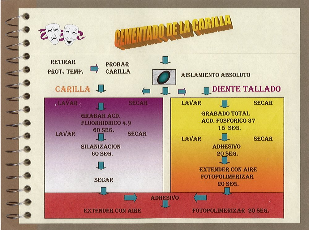 Se presenta en forma esquemática el procedimiento de cementación de las carillas de porcelana. Figura 3 y 4.