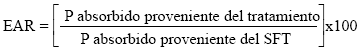 Del mismo modo, la EAR fue calculada como la relación de coeficientes de regresión lineal obtenidos entre el P absorbido y las dosis de P para los diferentes tratamientos y el SFT, de acuerdo al método sugerido por Chien et al. (1990).