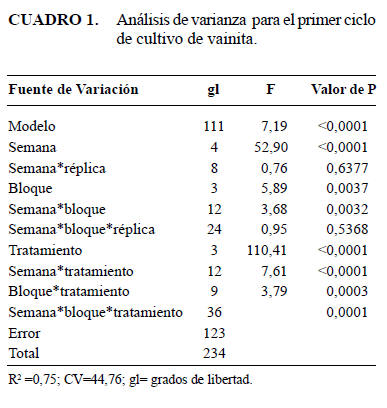 Durante los tres ciclos no se utilizaron insecticidas para el control de plagas. Todos los conteos se efectuaron con un microscopio estereoscopio marca Wild M3Z. Para el primero y segundociclo, los datos se analizaron mediante un análisisde varianza (ANDEVA) y las medias se separaron por la prueba de Tukey (P≤ 0,05), usando el paqueteestadístico InfoStat 1.1. En el caso del tercer ciclo, como los datos no cumplieron con los supuestos de normalidad, aditividad, independencia y homogeneidad, se aplicó la prueba de χ2 (95%) mediante el paquete estadístico InfoStat 1.1 (InfoStat, 2002).