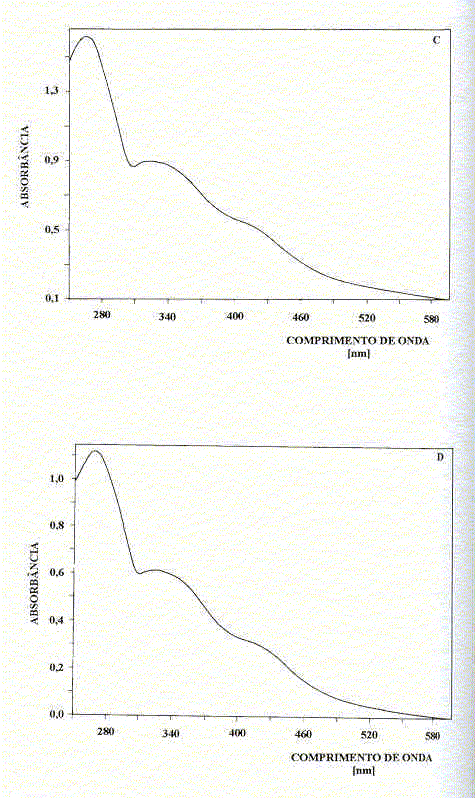 Espectros de absorção docomplexo e -trinitrofenil (TNP)- lisina da farinha extrusada com 18% de umidade (C) e com 27% de umidade (D)