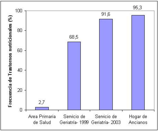 Los resultados documentados en este artículo después de la aplicación de la MNA en 3 escenarios geriátricos distintos permitieron establecer las tasas de trastornos nutricionales en subpoblaciones de ancianos que difieren entre sí por los estilos de vida. La desnutrición documentada en el envejecimiento puede resultar de la actuación de factores biológicos, entre ellos, la edad y los problemas concurrentes de salud. No debería desecharse, sin embargo, la presencia de prácticas culturales institucionales y asistenciales relacionadas con la provisión de cuidados médicos y nutricionales al anciano en los diferentes entornos de la asistencia sanitaria.