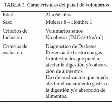 Se convocó a un panel de 9 personas adultas que cumplieron los criterios de inclusión y no presentaron ningún criterio de exclusión enumerados en la Tabla 2. El número de sujetos está en línea con la recomendación OMS que es de siete individuos, y la media de la recopilación mencionada de Foster- Powell que es de seis individuos.