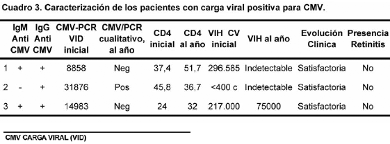 Introducción: En pacientes VIH positivos es fundamental diagnosticar infección por CMV. La relación entre serología, detección viral y evolución clínica no está plenamente establecida.