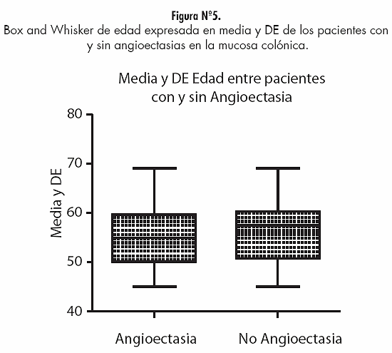 Debido a que existe una asociación ya conocida entre la presencia de lesiones vasculares del tipo angioectasias y personas ancianas, se buscó si en el grupo estudiado existía significancia estadística o no a este respecto.