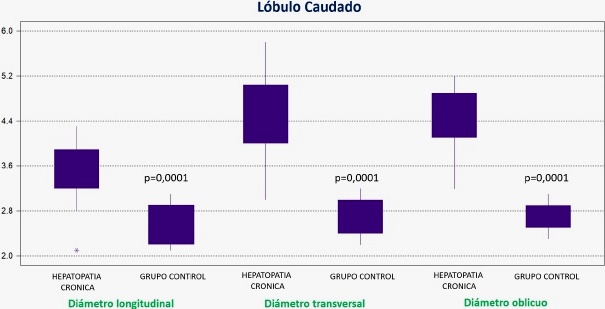 La hipertrofia del lóbulo caudado se observa en una variedad de condiciones hepáticas crónicas, siendo la cirrosis hepática la más común, pero puede observarse en otras condiciones como síndrome de Budd-Chiari, colangitis esclerosante primaria, fibrosis hepática congénita y transformación cavernosa de la vena porta entre otras. En este trabajo se decidio seleccionar un grupo control sin hepatopatía crónica y sin hipertensión portal, con la finalidad de establecer las métricas del lóbulo caudado y comparar su medida con los pacientes con hepatopatía crónica, demostrándose que los pacientes con hepatopatía crónica tienen el lóbulo caudado más grande, dado por sus diámetros y su volumen.