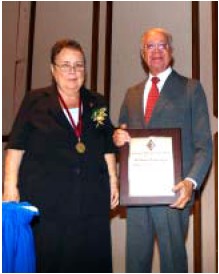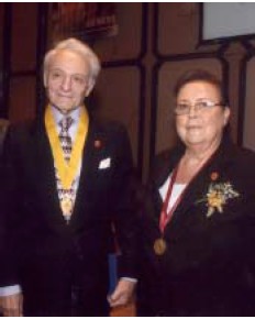 Figura 4. Los Drs. Itic Zighelboim y Fanny Fleitas exhiben la Medalla Presidencial y la Medalla del Presidente en Ejercicio, respectivamente.