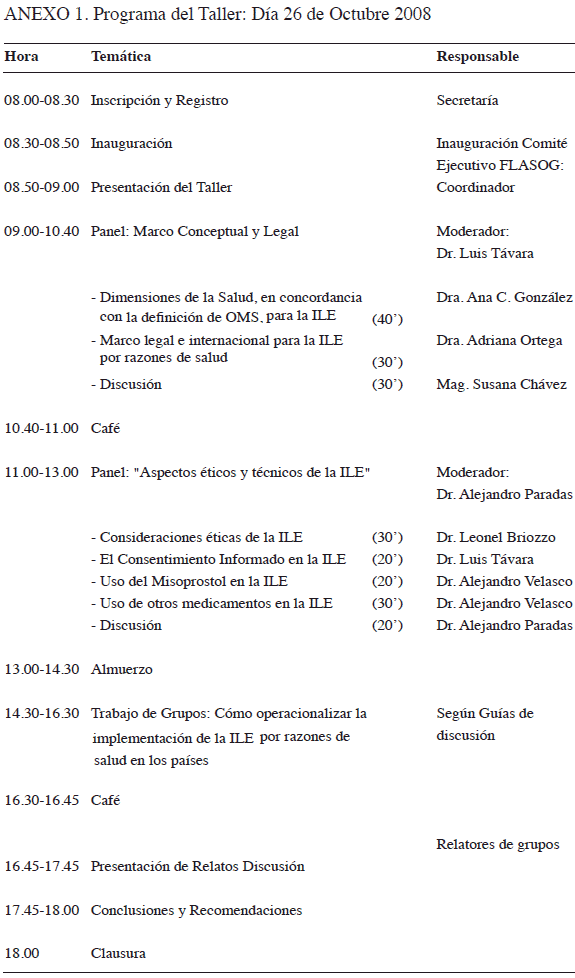 De otro lado, en el Taller llevado a cabo recientemente en la ciudad de Lima en agosto de 2008 sobre la Disponibilidad y Uso del misoprostol, los representantes del Comité de Derechos Sexuales y Reproductivos de FLASOG y de CLACAI recomendaron lo siguiente: