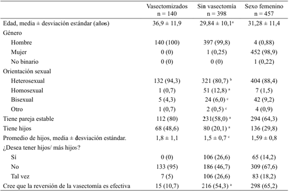 Por lo tanto, el objetivo de este trabajo es caracterizar las diferencias demográficas entre vasectomizados, hombres sin vasectomía y mujeres.