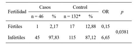 * Se excluyeron las pacientes que acudían por control ginecológico y de las cuales no se conocía con certeza su fertilidad.
