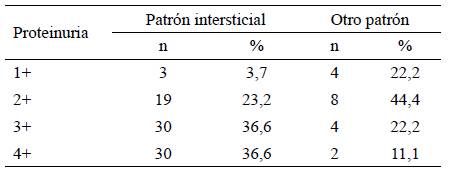 Tabla 5 Distribución de pacientes según la correlación entre patrón intersticial y proteinuria