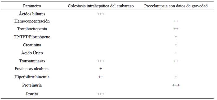 Cuadro 3 Frecuencia en los hallazgos bioquímicos entre los imitadores de preeclampsia y síndrome de HELLP