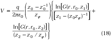 Cuando en (1) se sustituye el operador de Laplace (Ñ2) por el operador de Helmholtz (Ñ2+µ), donde µ es un parámetro que puede ser un número complejo, la solución del problema de Helmholtz con las mismas condiciones de contorno es de igual formas que (9) sólo basta sustituir ln(R) por la función de modificada de Bessel de segunda especie y orden cero Ko(µR)[5]. Para valores pequeños del argumento (µR) la función Ko(µR) puede ser aproximada mediante la función logarítmica [6]: