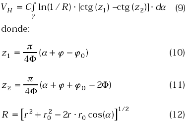 En la Tabla 1 VI corresponde a los valores obtenidos mediante la integral (9), y VF a los valores obtenidos mediante (19). Es obvia la convergencia de los valores obtenidos por ambos métodos. Los valores mostrados están multiplicados por el factor 2peo/q.