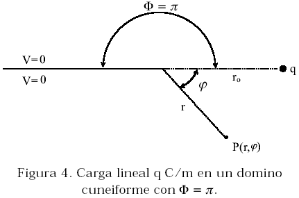 La formulación en términos matemáticos del problema descrito, corresponde a un problema de contorno en dos dimensiones asociado a la ecuación de Laplace con una singularidad en el punto de ubicación de la carga lineal q, punto (ro,jo). Es decir se desea resolver el siguiente problema: