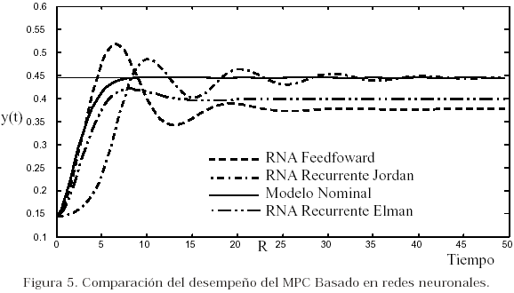 En forma general se puede concluir que el desempeño de un controlador predictivo basado en modelos, dependerá de la exactitud del modelo predictivo utilizado. La acumulación de errores durante la utilización iterativa de las redes neuronales es mucho más acentuada en las redes de retropropagación que en las redes recurrentes, siendo las segundas las que mejor ajustan los componentes estáticos y dinámicos de la gran mayoría de procesos o sistemas. La red neuronal debe emular satisfactoriamente tanto en los componentes estáticos como dinámicos para obtener un desempeño satisfactorio del MPC.