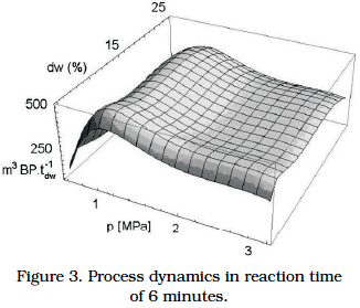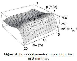 Mathematical and statistical evaluation of 4 dimensional data is unreasonably robust. From the matrix of data is clear that the optimal reaction time is from the technological point of view in the area of 6 and 8 minutes reaction time. Process dynamics at times 6 and 8 minutes were drawn and evaluated (Figures 3 and 4).