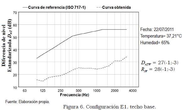 No existen aún, métodos establecidos para el estudio del aislamiento acústico en techos para ambientes exteriores. Sin embargo existen algunos trabajos para mediciones en condiciones de laboratorio Cook [6], Cook [7] y Cook [8]. En cuanto a la aplicación de los métodos recomendados por la ISO 140-5 para aislamiento de fachadas, se consultaron los trabajos de Sánchez, Pedrero y Gómez [9] y Tadeu, António y Mateus [10]. La ausencia de métodos de experimentación para aislamiento de techos condujo a tomar la decisión de adaptar la norma ISO mencionada, cambiando la ubicación de la fuente, a fin de reducir el ángulo de cobertura de las ondas sonoras, reducir la dispersión de las mismas y mejorar la energía incidente sobre la muestra o prototipo de techo. Los resultados mostrados podrían ser aplicados desde el punto de vista acústico, para brindar mejores condiciones de vida a la sociedad.