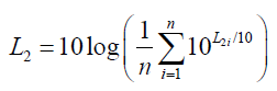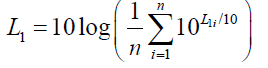 donde n es el número de mediciones realizadas, Lbi (dB) son los niveles de presión sonora desde Lb1 hasta Lbn . L1i (dB) niveles de presión sonora exterior desde L11 hasta L1n . L2i (dB) niveles de presión sonora medidos en el interior del módulo desde L21 hasta L2n .