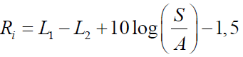 donde S es el área del elemento en ensayo y A es el área de absorción sonora equivalente del local de recepción. El tiempo de reverberación de referencia es T0 = 0,5 s.