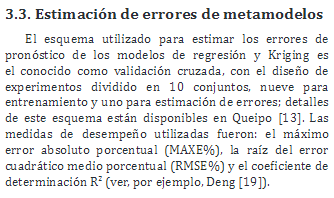 Los metamodelos seleccionados para pronosticar los valores de M, Smax y fpandeo (variables de salida) fueron: i) regresión polinomial, y ii) Kriging. A continuación se presenta una breve reseña de cada uno: