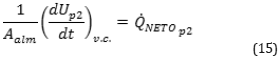 NETOalm, hs2, he2: área del almacenador térmico (m2), energía interna total en el almacenador térmico (J), calor neto intercambiado en el almacenador térmico (W), entalpias de entrada y salida (kJ/kg) en el almacenador térmico.