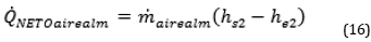 NETOairealm, ṁairealm: calor neto intercambiado (W) con aire en almacenador térmico y flujo másico de aire en almacenador térmico (kg/s)