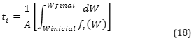 El tiempo de duración que se prolonga cada uno de los periodos de secado se relaciona con la humedad del producto (ec. 18). Siendo i, los intervalos principales de deshidratado: