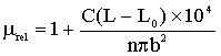 mrel: Permeabilidad magnética relativa; L: inducción magnética en la muestra en mH; L0: inducción magnética en el vacío en mH; n: número de vueltas del hilo de cobre en la bobina; C: largo del enrollado en la bobina; y b: diámetro interior de los tubos de vidrio donde se colocó la muestra.