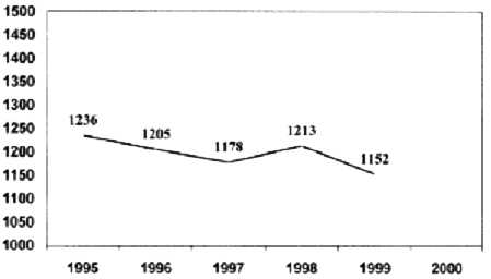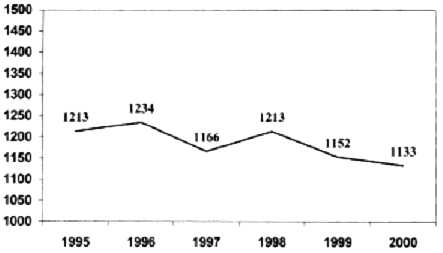 En Venezuela no se han realizado estudios de seguimiento a largo plazo de grupos de población controlados para establecer la evolución de la prevalencia de la insuficiencia cardíaca. No existe el sustrato organizativo de Salud Pública que sirva de base para estudios que requieren una gran capacidad organizativa y disposición de los recursos necesarios para investigaciones de este tipo. La mortalidad en todo el país por causa de la insuficiencia cardíaca en el período 1995 - 2000 se mantuvo estable, con oscilaciones discretas (Figura 1, Figura 2), según estadísticas del Departamento de Enfermedades Cardiovasculares del Ministerio de Salud y Desarrollo Social (Beatriz Larocca de Rodríguez, Directora, Comunicación Personal).