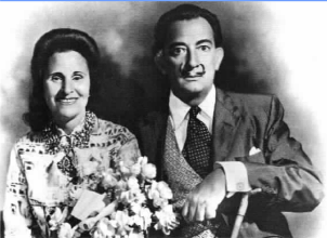 Amor a primera vista. Surge el amor a primera vista entre Dalí y Gala. El artista quedó prendado de la joven Gala de treinta años también conocida como la "musa surrealista". Gala Eduard cuyo nombre era Helena Deluvina Diakonoff había nacido en Rusia hacia 1896 y adoptado el nombre de Gala desde pequeña. Se había trasladado a París y contraído matrimonio con el poeta Paul Eduard en 1917. Ambos eran conocidos, además, por la participación en menages a trois. Gala era considerada como una mujer encantadora, seductora y daba la impresión de un ser distante. De acuerdo con Dalí, Gala va a librarlo de sus dificultades emocionales así como de sus temores y además bajo su mirada protectora se va a sentir seguro y proseguirá con confianza su carrera ascendente. Gala abandona a su esposo Eduard y permanece en Cadaqués con Dalí. (Foto: Dalí-Gala).