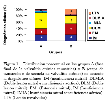 En el grupo A, que representa casos con edades mayores de 21 años, se pudo demostrar que hubo un predominio de doble lesión mitral, es decir, insuficiencia mitral con el componente estenótico en casi todos los casos.
