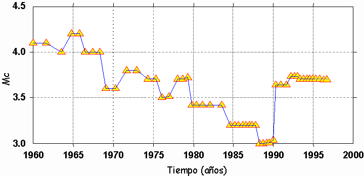 Figura 6. Variación de Mc con el tiempo en el catálogo CAT2000 depurado, entre 1960 y 2000