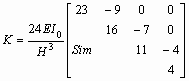 Conocidas las rigideces de los pisos presentadas en la figura 1, se construye la matriz de rigidez siguiendo la expresión (2). La matriz de rigidez de la estructura es: