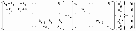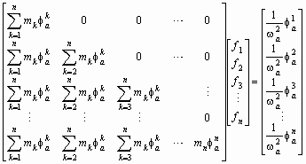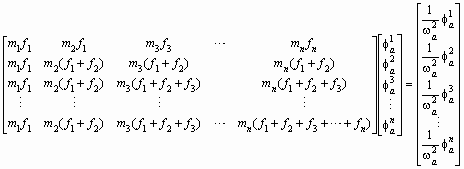 Extendiendo la expresión (4) y sustituyendo en ella las matrices características para un edificio de corte se tiene, para el modo a: