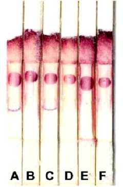 Fig. 6. Comparación del límite de detección de Troponina I cardiaca entre el sistema inmunocromatográfico preparado en el laboratorio y el cardiac STATusä. Las columnas blancas corresponden a la concentración de 0,5 ng/mL, las columnas negras a 1 ng/mL, las columnas gris claro a 2 ng/mL y las columnas gris oscuro a 4 ng/mL de Troponina I cardiaca en forma de complejo terciario en una mezcla de plasmas de donantes.
