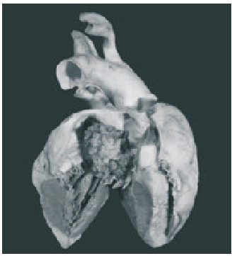 Fig. 1. Aurícula izquierda con lesión papilar que ocupa gran parte de la cavidad.
