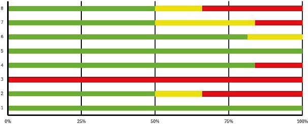 | 1 | 2 | 3 | 4 | 5 | 6 | 7 | 8 | 9 | 10 | 11 | Total | % | Calidad | |