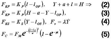 donde KP y KS son las constantes de los elementos elásticos en paralelo y en serie, respectivamente, ( l-lOP ) representa la variación de la longitud del EEP con respecto a su longitud natural lOP, (Y-lOS ) es la variación de longitud del EES con respecto a su longitud natural lOS, Y es la posición del elemento inercial del modelo. El parámetro λ establece la proporcionalidad entre la fuerza viscosa y la velocidad
