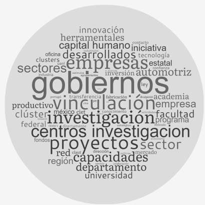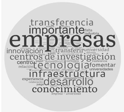 La Figura 2 detalla la nube de palabras para la variable Vinculación. La colaboración entre centros de investigación, empresas locales y extranjeras es fundamental para la transferencia de tecnología. Los entrevistados mencionaron ejemplos de colaboración exitosa con clústeres en otros países, como Portugal, donde se han establecido convenios para el intercambio de conocimiento y experiencias. Se destacó que estas alianzas estratégicas permiten a las empresas locales acceder a capital humano calificado y a prácticas innovadoras, fortaleciendo su capacidad para competir a nivel global.