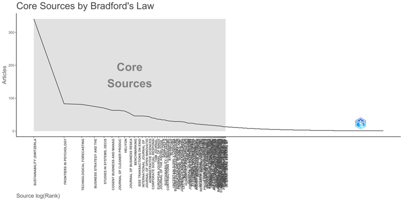 Se calcularon indicadores como el número de publicaciones por año, tasa de crecimiento anual, cantidad de autores, colaboración internacional y citas promedio por documento. Se identificaron las fuentes más relevantes aplicando la Ley de Bradford, clasificándolas en zonas de alta, media y baja concentración de publicaciones.