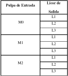 El flujograma del proceso continuo se basó en lograr la interacción mutua entre los licores de lixiviación y la pulpa densa de lixiviación con un total de tres recirculaciones para cada pulpa densa de entrada. Donde M0 es el mineral sin lixiviar, M1 es la pulpa densa de lixiviación en un pase y M2 es la pulpa densa de lixiviación luego del segundo pase. Mientras que los licores L1, L2 y L3 son aquellos que fueron lixiviados una, dos y tres veces, respectivamente.